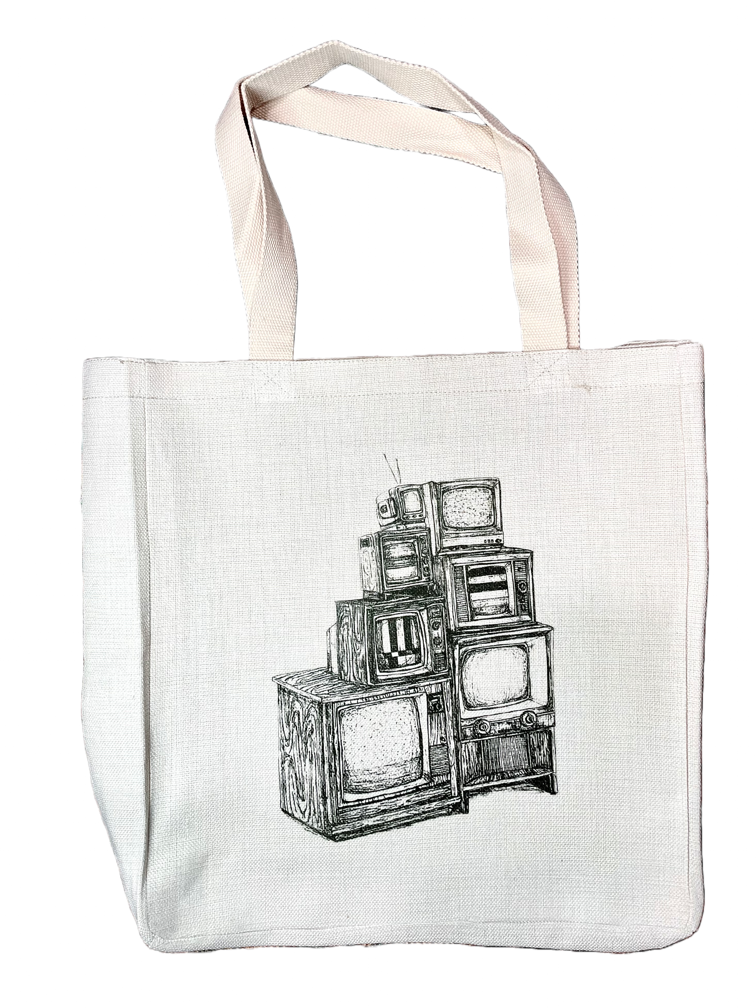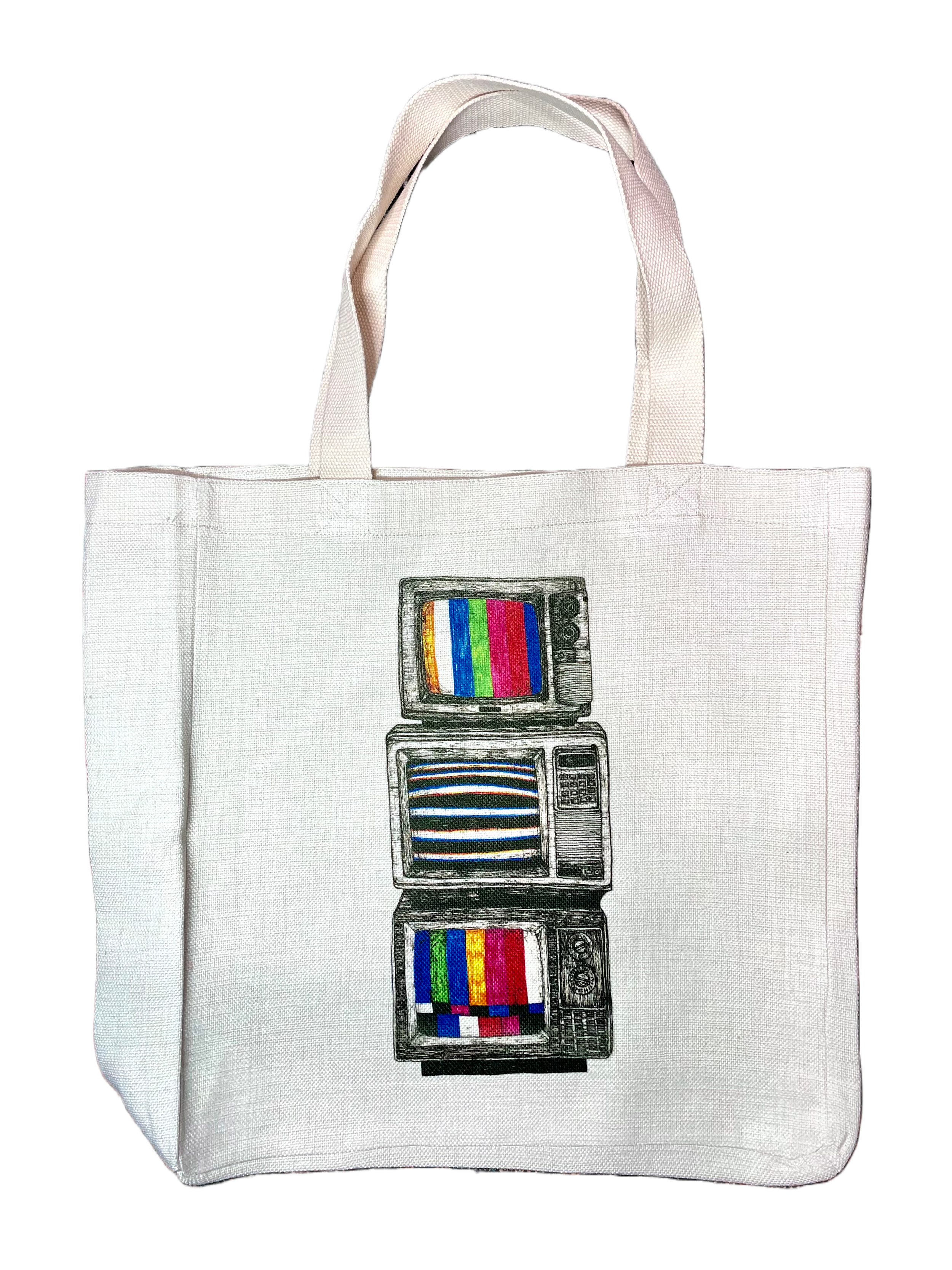 Shop Pomegranate Tote $25.00 Sold out Colorful TV Tote $25.00 Sold out Tropical Tote $25.00 Sold out Spotted Jellyfish Tote $25.00 TV Stack Tote $25.00 Heels Tote $25.00 Swimming Jellyfish Tote $25.00 Moth Tote $25.00 TV Static Tote $25.00 TV Sticker $3.00 Clocks Tote $25.00 Sold out Cake Tote $25.00 Sold out Chairs Tote $25.00 Sold out Lamps Tote $25.00 Sold out